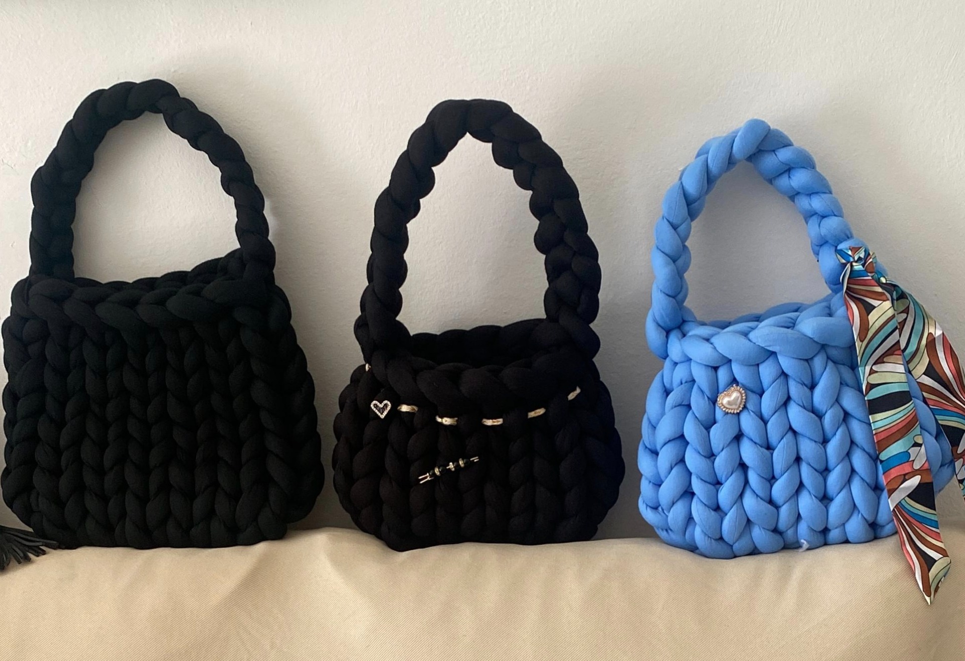 Una chunky bag è una borsa realizzata con un filato spesso (come quello usato per l'uncinetto o la maglia) che la rende morbida, voluminosa e tattile, conferendole un aspetto grosso e soffice, simile a un cuscino.